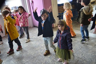 Naar goede jaarlijkse gewoonte en om ons thema over dieren af te sluiten, mochten onze kleuters vandaag verkleed als dier naar school komen. We maakten er een dolle beestenboel van met uiteraard eerst een fotoshoot gevolgd door activiteiten die verband hielden met de dierenwereld. Zo mochten onze kleuters zich uitleven op het avonturenpark waar ze konden klimmen en klauteren en probeerden om hun evenwicht te behouden net zoals poezen en aapjes en nog zoveel andere dieren dat kunnen. Ze dansten ook op beestige muziek en konden hun kunsten als poes, hond, konijn, vis of een ander dier nog eens tonen op allerlei toestellen die voor hen klaar stonden. Er volgde ook nog een poppenspel over poes Nelleke en we eindigden met dierenyoga om onze dag rustig af te sluiten. En het moet gezegd...onze diertjes waren in topvorm!