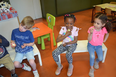 De voorbije week werden we in onze klas ondergedompeld in het leven op de boerderij. Via allerlei spelletjes, verhaaltjes, verkleedpartijen,... leerden we over de dieren en het werk op de boerderij. Het was ook het juiste moment om van onze zelfgezaaide tuinkers te proeven want die was immers al flink gegroeid. De tuinkers werd op een met kaas besmeerd toastje gelegd en dat mochten we dan opeten. Mmmm, wat was dat lekker, zeker omdat het onze eigen tuinkers was. Wij kennen nu al veel over het boerenleven en zijn klaar om volgende week als echte boeren aan de slag te gaan op onze boerendag. We kijken er al naar uit!